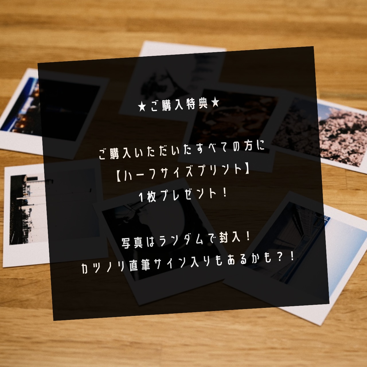スマホケースに挟んだり、壁に貼ったりしても楽しめる、手のひらサイズの写真プリント。写真はランダムです。カツノリサイン入りもあるかも?!